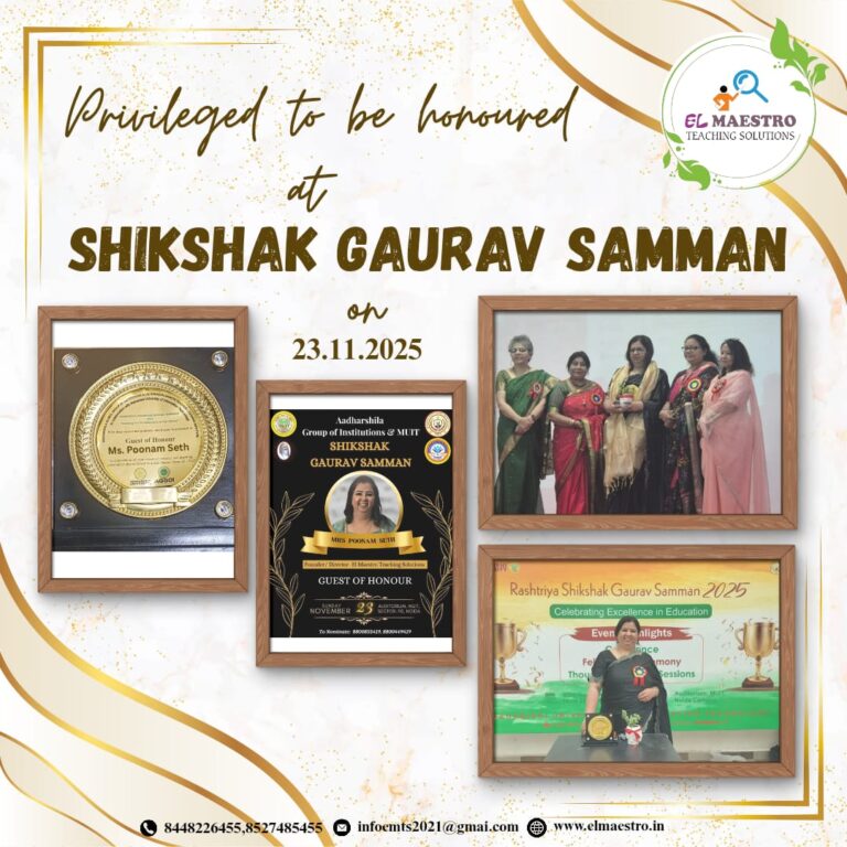 Ms. Poonam Seth, Founder Director & CEO of El Maestro Teaching Solutions , was formally felicitated at the New Delhi Education Excellence Conclave – 2025, organized by the All India Private Schools Association (AIPSA), New Delhi, in collaboration with DIDAC India. Held on 19th November 2025, the conclave convened eminent educationists, policymakers, and academic leaders from across the nation to deliberate on future-ready educational paradigms.